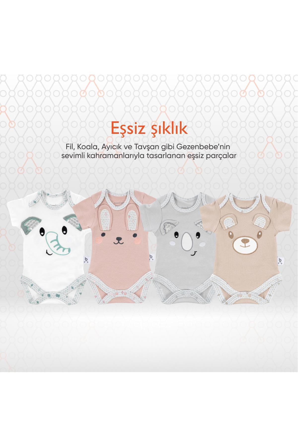 GEZENBEBE'NİN BENZERSİZ TASARIMI: Fil, Koala, Ayıcık ve Tavşan; Gezenbebe'nin sevilen dört kahramanı bu setle bebeğinizi eşsiz bir şıklıkla buluşturuyor.