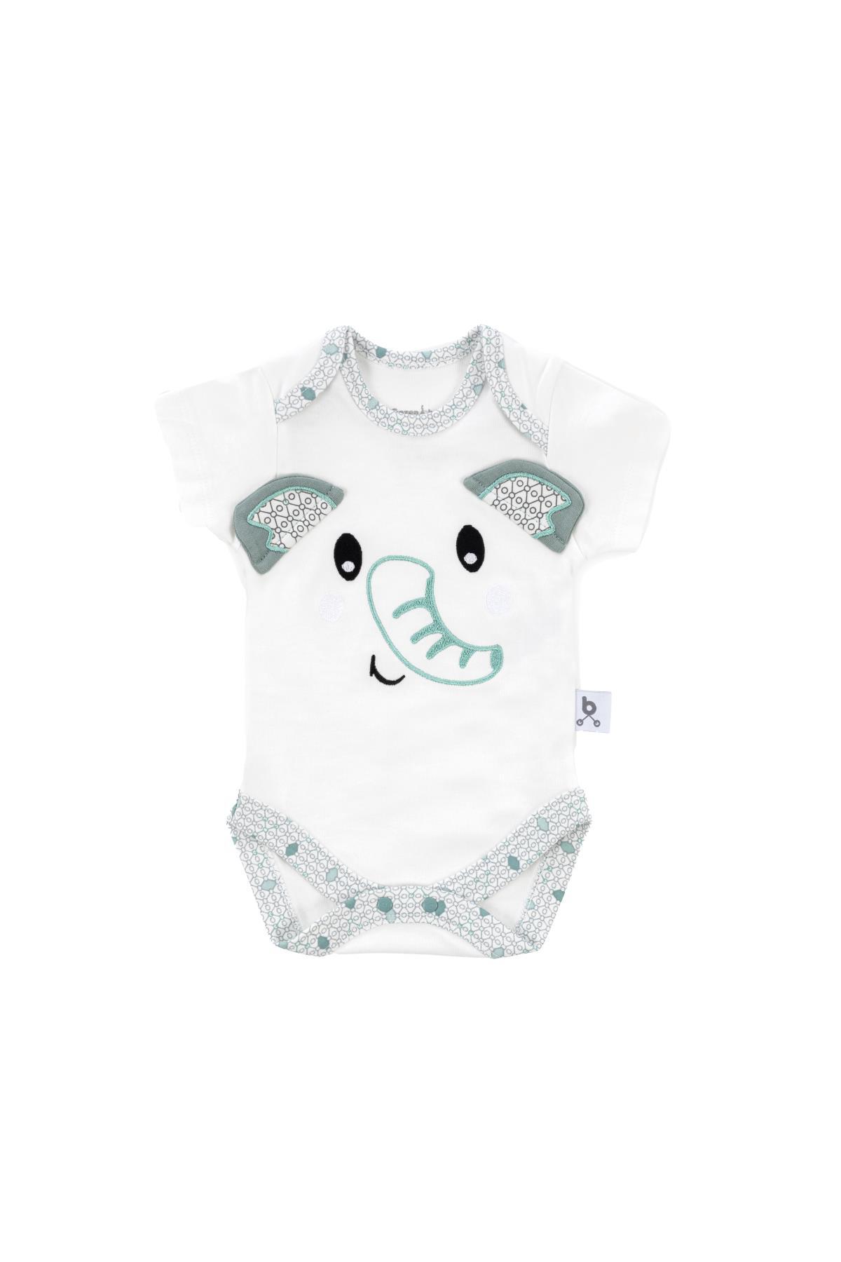 Bebeğinizin hassas cildi için mükemmel seçim: Gezenbebe'nin ikonik paternleri, Fil, Koala, Ayıcık ve Tavşan maskotlarına ek olarak ince nakış detaylarıyla öne çıkan bu body, bebeğinizin kıyafet koleksiyonunu tamamlar.