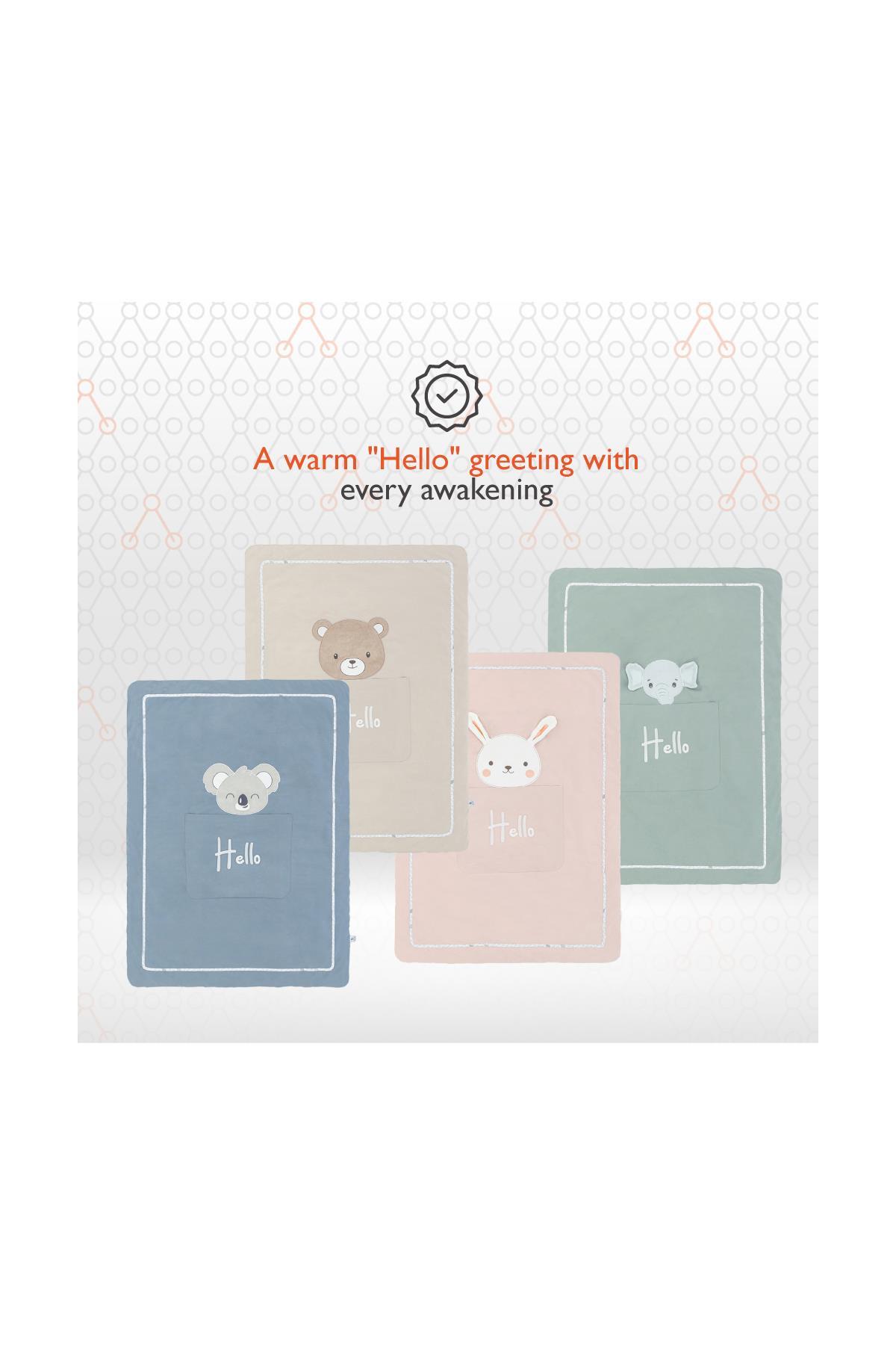 Gezenbebe Hero Nakışlı Bebek & Çocuk Yorganı, miniklerin en tatlı uykuları için özenle tasarlandı. Pastel renklerin sakinliğini ikonik Gezenbebe deseniyle buluşturan bu yorgan, bebeğinizin ve çocuğunuzun rüyalarını renklendirecek. Üst yüzeyinde, Gezenbebe'nin en sevilen kahramanları Fil, Koala, Ayıcık ve Tavşan'ın nazik nakışlarına eşlik eden büyük "Hello" yazısı, her uyanışta sıcacık bir karşılama sunar. Yüksek kaliteli malzemesi sayesinde, yorgan hem yumuşak bir dokunuşa sahip olup hem de uzun süreli kullanım için idealdir. Hem şık hem de konforlu bu yorganla, miniklerin uykuları artık daha keyifli ve rahat.
