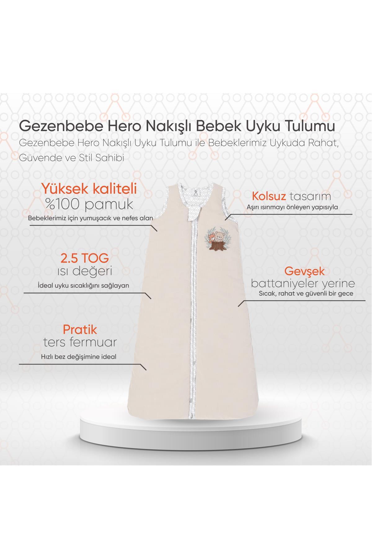 TASARIM: Gezenbebe Hero Nakışlı Bebek Uyku Tulumu, bebeğinizin aşırı ısınmasını önlemek adına kolsuz bir tasarıma sahiptir.