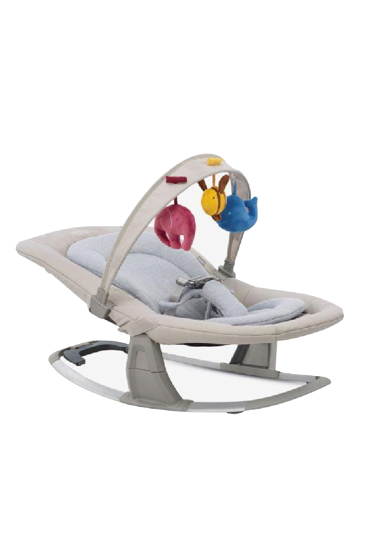 Sallanan sandalye hafiftir ve yan kulpları sayesinde kolay taşınır. Ayrıca oyuncak barı, bebeğinizin yumuşak kukla oyuncaklara kolayca erişebilmesini sağlayacak şekilde çeşitli pozisyonlarda asılabilir.