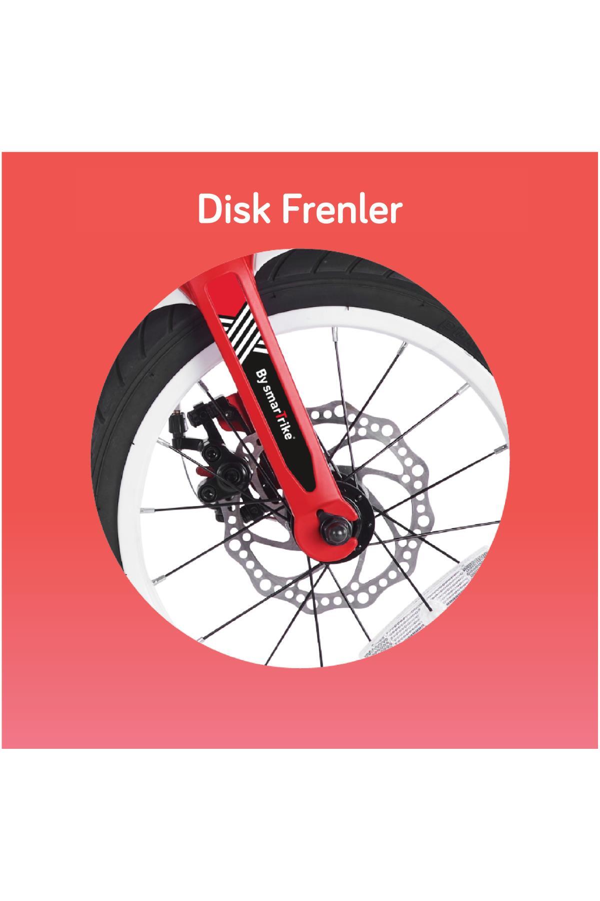• Disk Frenler: Profesyonel kalitede disk fren sistemi, çocuğunuzun hangi arazide olursa olsun güvenli ve pürüzsüz fren yapmasını sağlar.